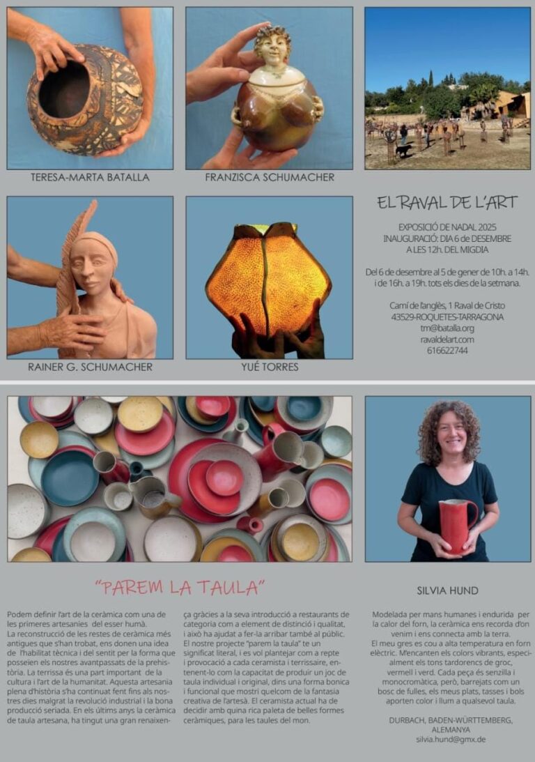 L’exposició “Parem la Taula” s’ha dut a terme del 6 de desembre al 5 de gener, al Camí de l’Anglès, 1, Raval de Cristo (Roquetes, Tarragona), i ha tornat a convertir el Raval de l’Art en un espai de trobada entre creació artística, ceràmica contemporània i públic durant les festes de Nadal.